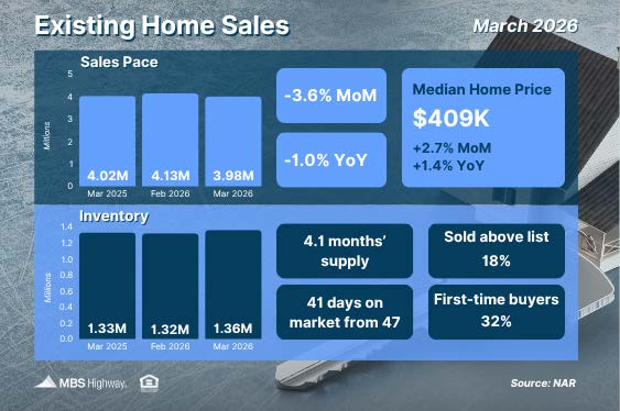 After a rebound in February, existing home sales slowed in March, falling 3.6% according to the National Association of REALTORS® (NAR). At the same time, housing inventory improved, rising 3% from February to 1.36 million homes, which is 2.3% higher than this time last year.