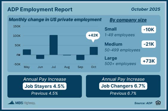 For now, October’s ADP data likely doesn’t shift the Fed’s stance in either direction: job growth wasn’t strong enough to rule out rate cuts, nor weak enough to make one necessary.